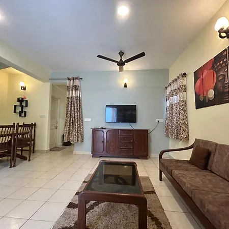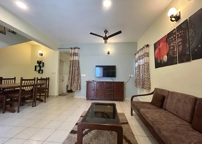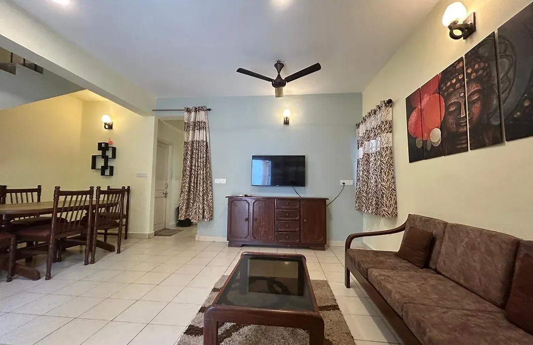 El The Golden Villa Calangute ofrece terraza y una sala de estar compartida y se encuentra en el barrio Calangute Beach de Calangute, a tan solo 5 minutos a pie del Kerkar Art Complex. Este apartamento frente a la playa, con un salón compartido con vistas a las montañas, está situado muy cerca del Tibetan Market, Baga Road.